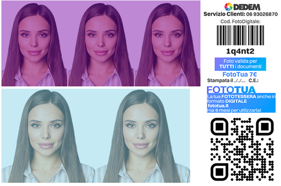 Nelle cabine fototessera Dedem, con un solo prodotto ottieni 5 foto, già pronte per diversi documenti