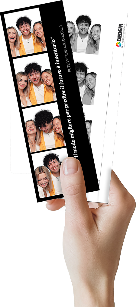 Nelle Cabine Fototessera Dedem puoi vivere un’esperienza diversa: la FotoVintage – due strisce, quattro pose, in bianco/nero e a colori – da conservare o condividere, pronta a rendere ogni momento unico!